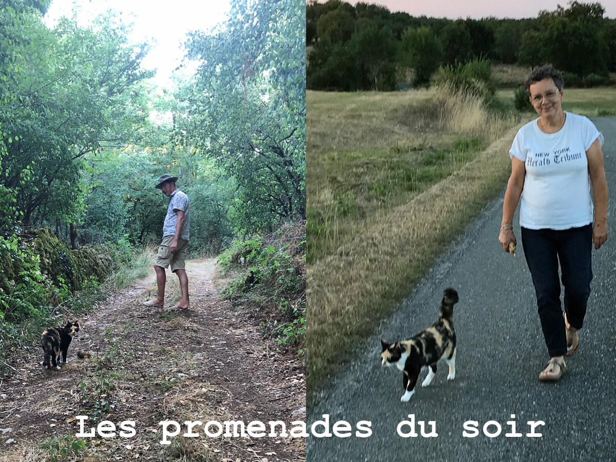 Dès le printemps 2022, nous sommes retournés avec Lola dans la maison du Lot. Elle a tout de suite reconnu, repris ses marques, ses habitudes, les longues surveillances des poules du voisin, et puis, petit à petit, elle a commencé à venir se promener avec nous, comme un petit chien. Comme cela ne posait pas de problème, nous sommes donc retournés plusieurs fois à trois, et également tous les deux, Sophie ayant des activités associatives. Lorsqu'on me demandait si je descendais seul, je disais toujours "Non, je descends avec ma Lola". Elle aimait ces balades journalières, elle attendait le mot du départ "On va se promener, Lola ?" et hop, elle arrivait vers moi, la queue en l'air, ravie d'aller faire une promenade ensemble (la journée, elle ne se privait pas d'aller se promener ou chasser).