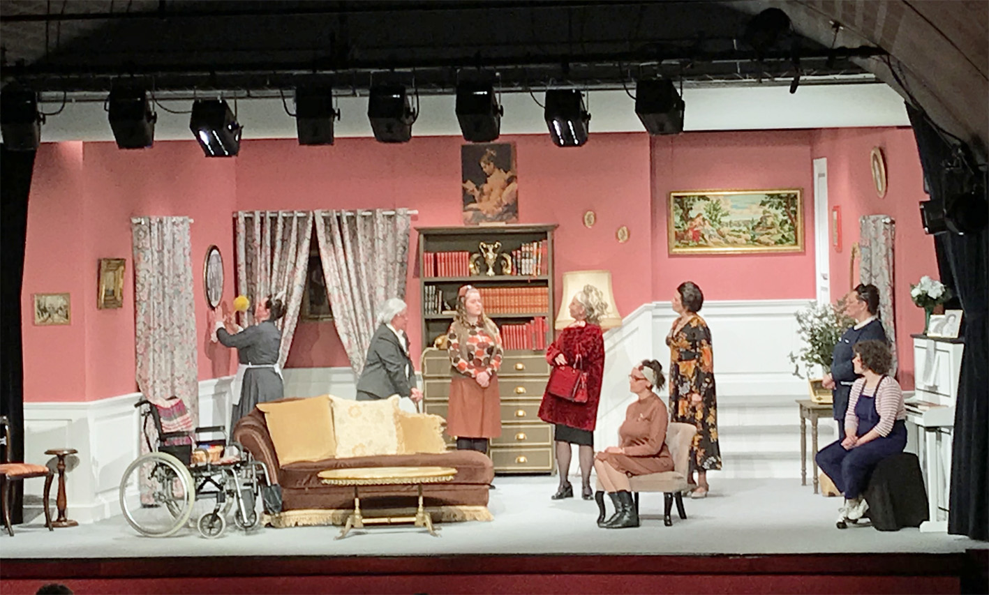 Cette année, une célèbre pièce, que personnellement je connaissais par le film de François Ozon : 8 femmes. Le choix a été accepté de ne faire jouer en principe que des femmes, à une exception près : Gilles Alleau, l'un des plus anciens de la troupe joue en effet sa cinquantième année. Lui imposer une pause eut été dur. Un rôle a été adapté...